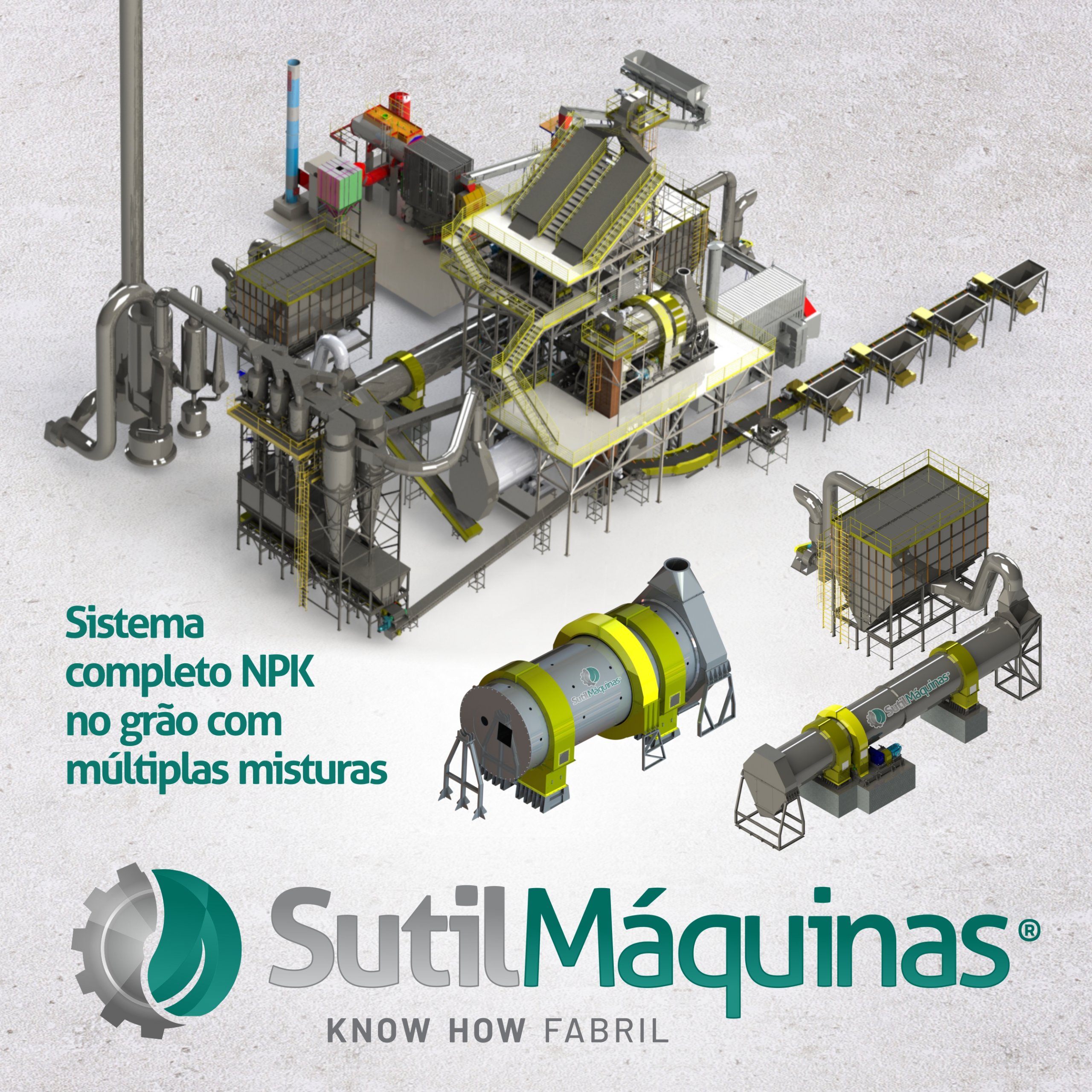 A Sutil Máquinas fabrica com absoluto rigor técnico linha completa de equipamentos para: Secagem, Biomassa, Fertilizantes, Etanol, Reciclagem e Indústrias Químicas.